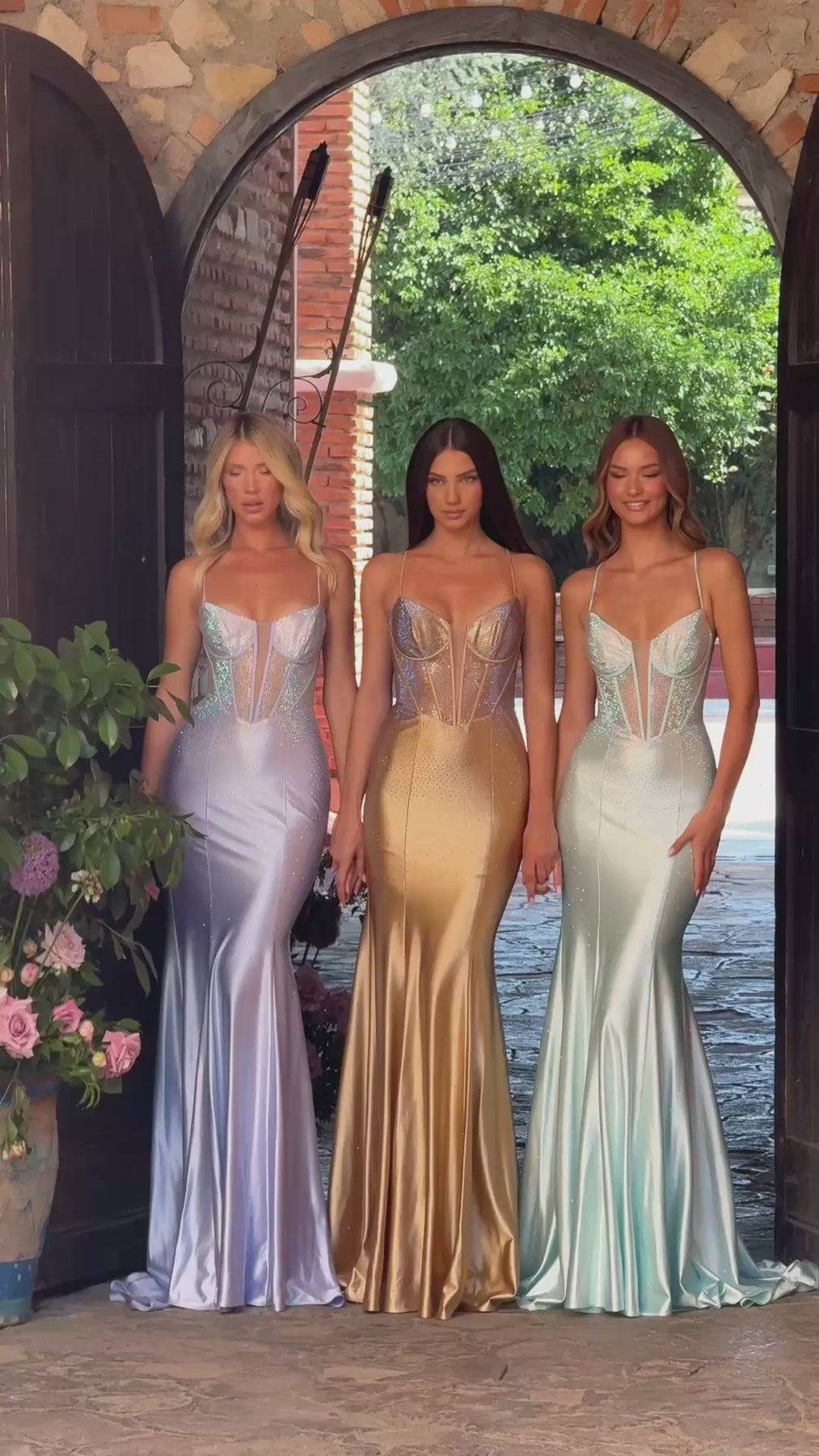 Get ready to turn heads in this shimmering stretch jersey dress that hugs you just right. The fit-and-flare skirt moves with a flirty bounce, while the fitted corset bodice dazzles with iridescent hot stones. A plunging sweetheart neckline with delicate straps adds a touch of charm, and the lace-up corset back with a peek-a-boo cutout keeps things mysteriously playful. Perfect for making every moment sparkle!