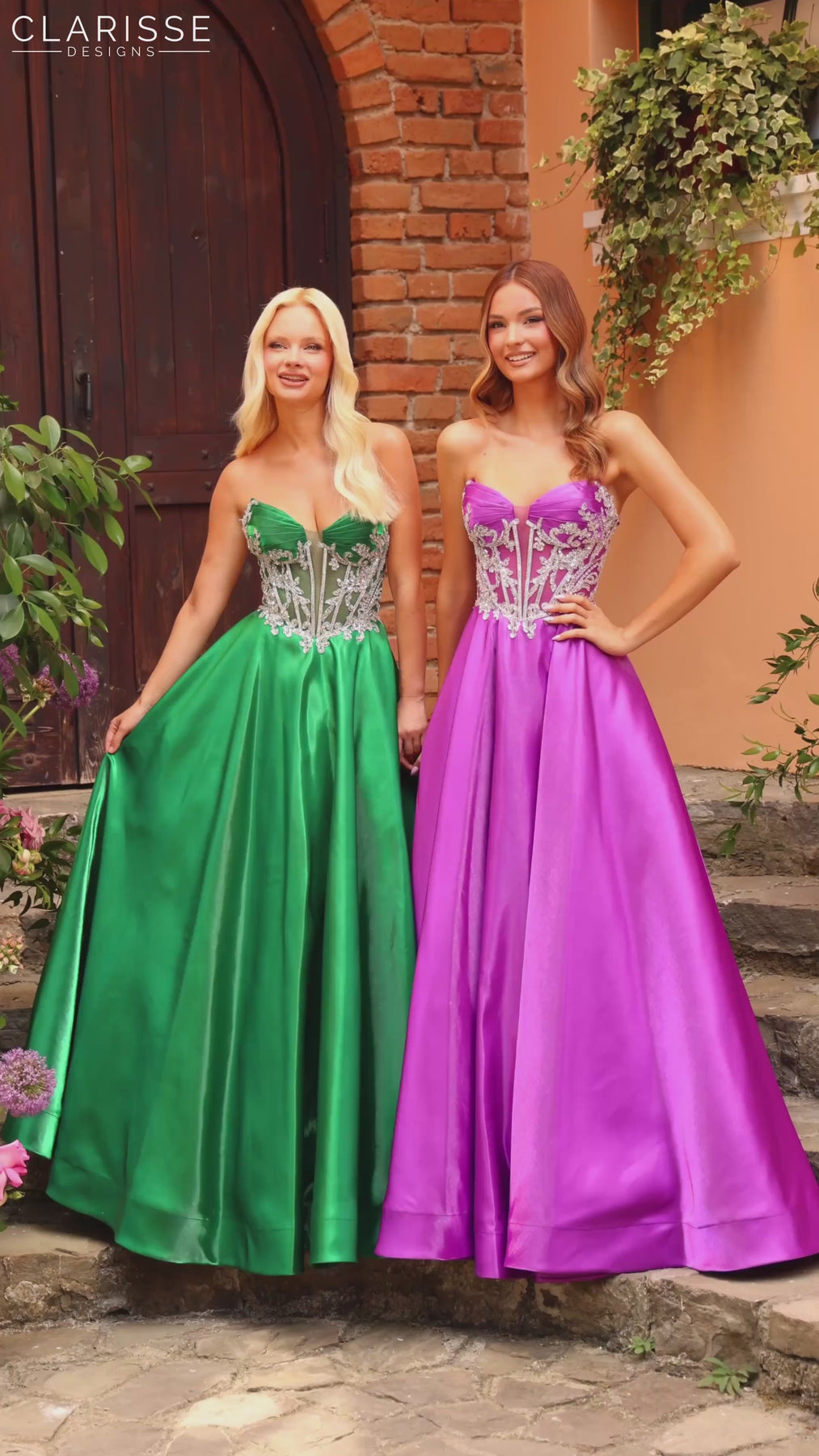 Style #62140 is a liquid satin ball gown that’s equal parts glamorous and fun. The corset bodice are decorated with an intricate silver beading design and a plunging strapless sweetheart neckline to bring sparkle and elegance. The sheer midriff bodice adds a subtle touch of sexiness, while the lace-up back lets you find your perfect fit. Twirl effortlessly in the full skirt—complete with pockets for a playful and practical touch.