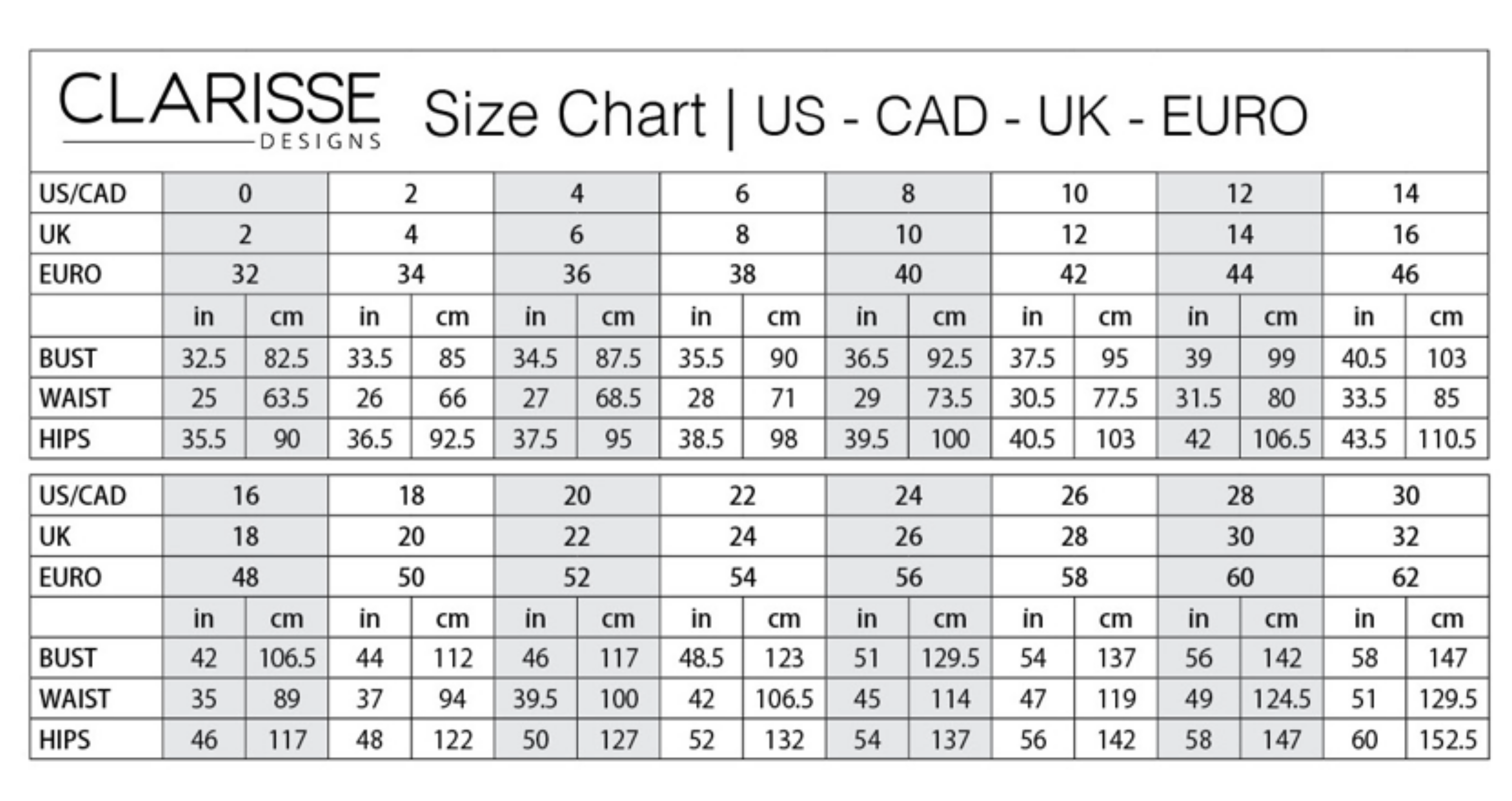 Size Charts
